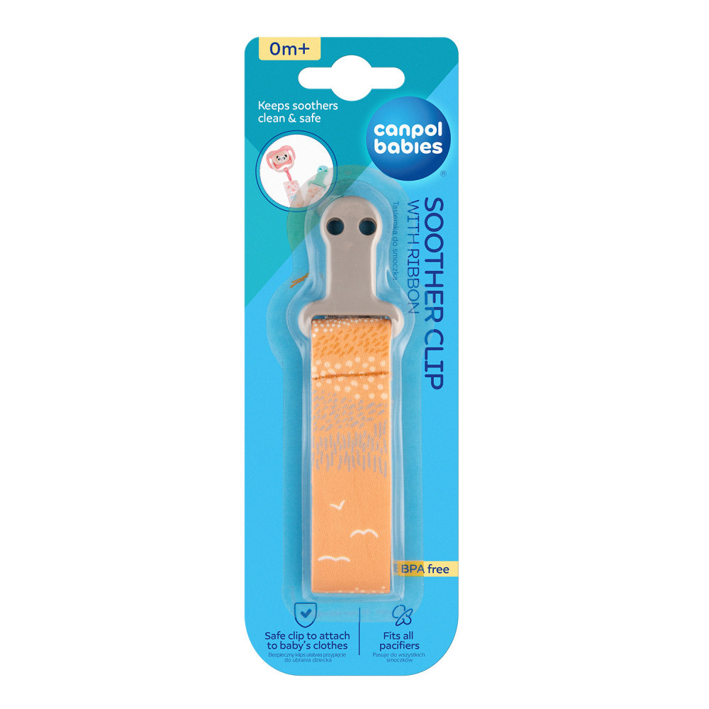 Pevný klip umožňuje pripevniť cumlík so stuhou na oblečení vášho dieťaťa.