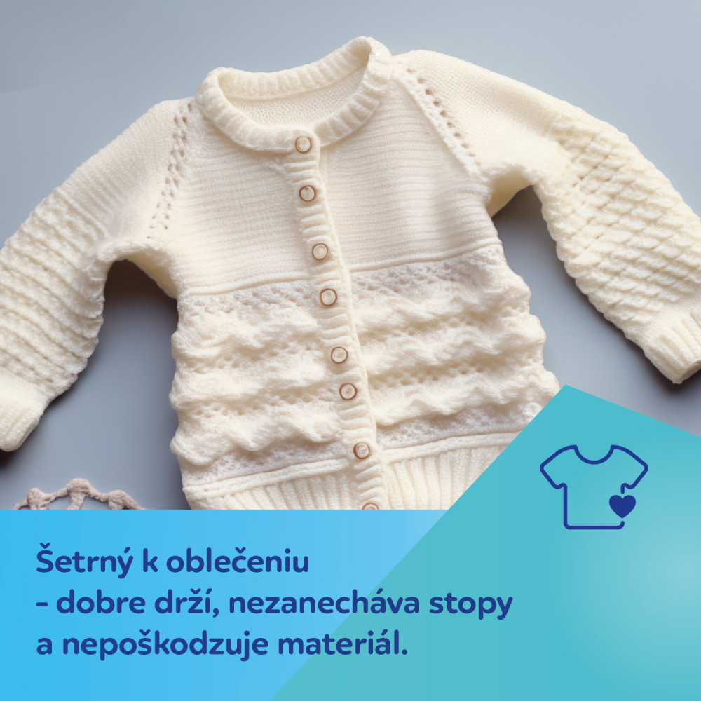 Šetrná k oblečeniu – dobre drží, nezanecháva stopy a nepoškodzuje materiál.