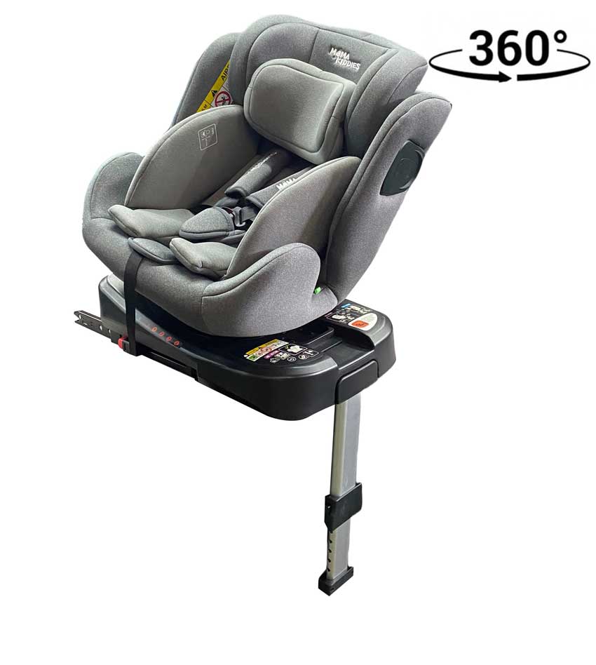 ISOFIX 360° otočná autosedačka Mama Kiddies Felix i-Size s podpornou nohou – v sivej farbe + darček: chrbtová opierka