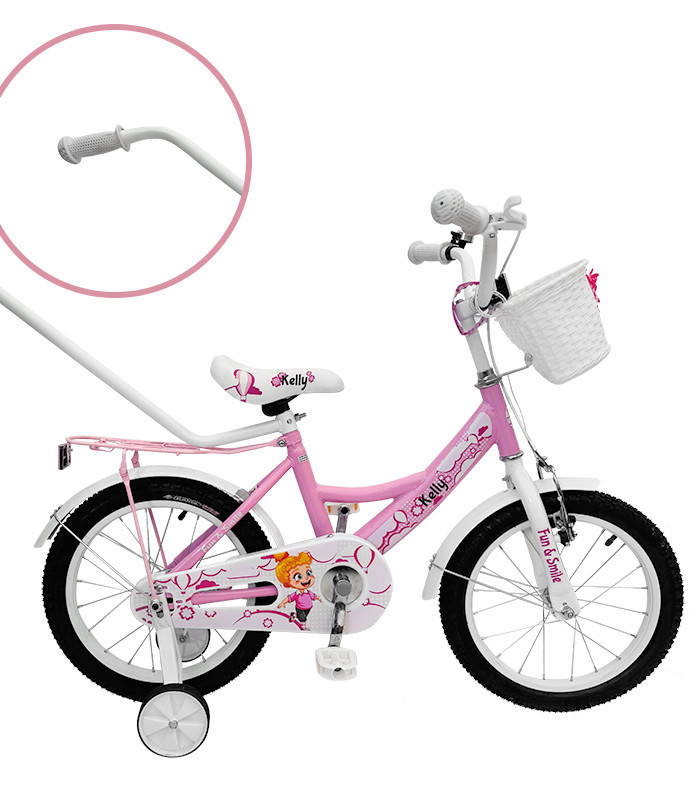 Kelly detský bicykel s rodičovskou rukoväťou – ružový 16" + darček