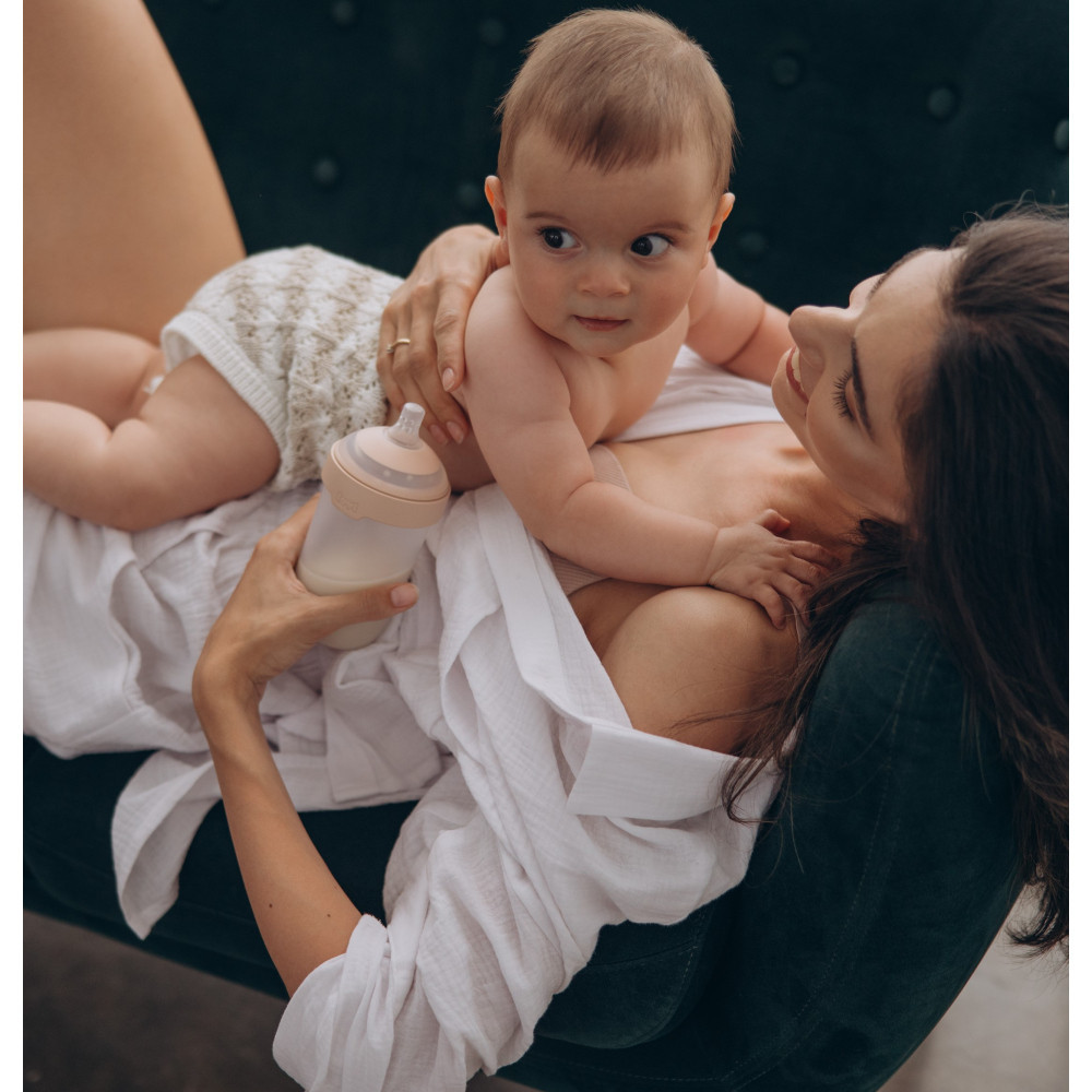 Návod na použitie (cumlík na kŕmenie): Pred prvým použitím výrobok očistite a potom vložte do vriacej vody na 5 minút. Ide o zabezpečenie hygieny. Pred každým použitím umyte cumlík v teplej vode, aby bola zaistená hygiena. Pri umývaní je potrebné venovať osobitú pozornosť, aby nedošlo k poškodeniu ventilu. Cumlík sa neodporúča umývať v umývačke riadu, pretože čistiace prostriedky môžu výrobok poškodiť. Cumlík je možné sterilizovať v mikrovlnnom / parnom sterilizátore alebo pomocou sterilizačnej kapsle, ktorú je možné zakúpiť samostatne s ďalším cumlíkom na fľašu. Nepoužívajte žiadne antibakteriálne látky. Pred každým použitím cumlík na kŕmenie skontrolujte a potiahnite cumlík do všetkých strán. Najmä, ak má dieťa zuby. Vyhoďte pri prvých príznakoch poškodenia alebo oslabenia. Neuťahujte poistný úchyt fľaše, pretože to môže poškodiť vzduchový ventil cumlíka. Vždy skontrolujte tesnosť. Ak dôjde k úniku tekutiny, opäť odskrutkujte uzáver a skontrolujte, či je cumlík správne nasadený.Nikdy žiadnym spôsobom nezväčšujte prietokové otvory na cumlíku, pretože to môže cumlík poškodiť. Nenechávajte cumlík na kŕmenie na priamom slnku alebo v teple, ani ho nenechávajte v dezinfekčnom prostriedku (“sterilizačný roztok”) dlhšie, ako sa odporúča, pretože to môže cumlík oslabiť. Cumlík sa odporúča vymeniť max. Po 2 mesiacoch používania. Výrobok nie je hračka. Návod uschovajte pre neskoršie použitie. Kód šarže je umiestnený na obale.