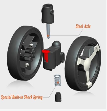 • Dupla első és hátsó kerekek a stabil haladásért