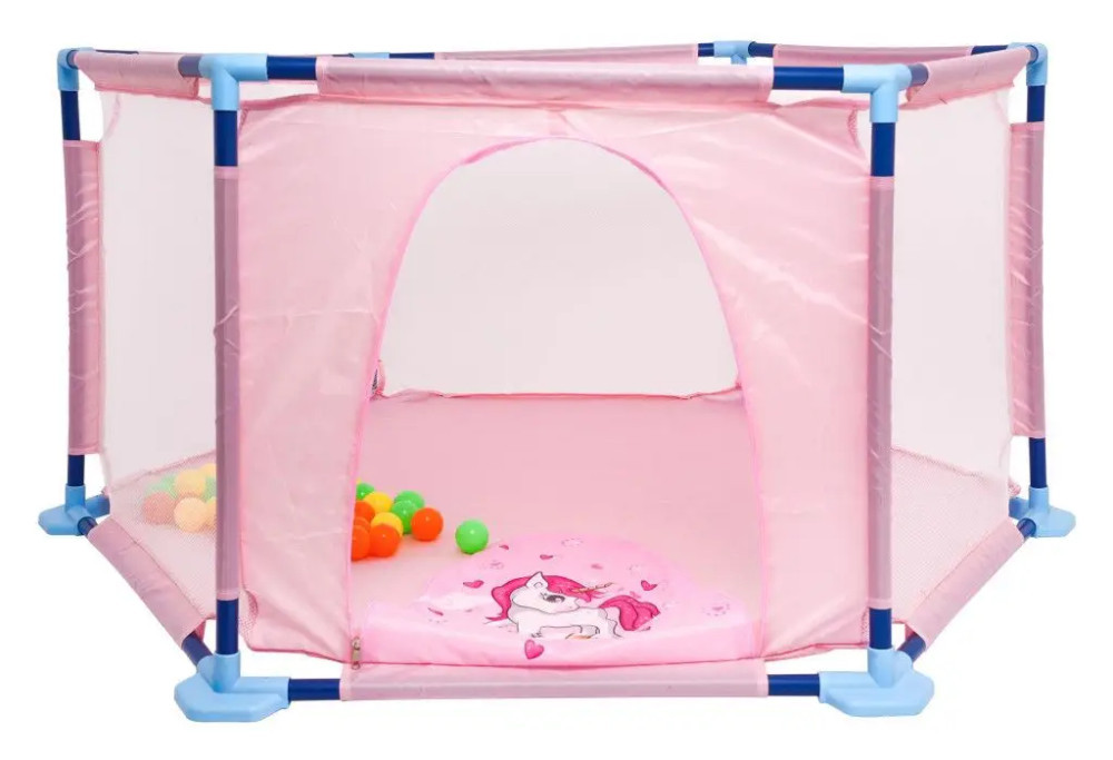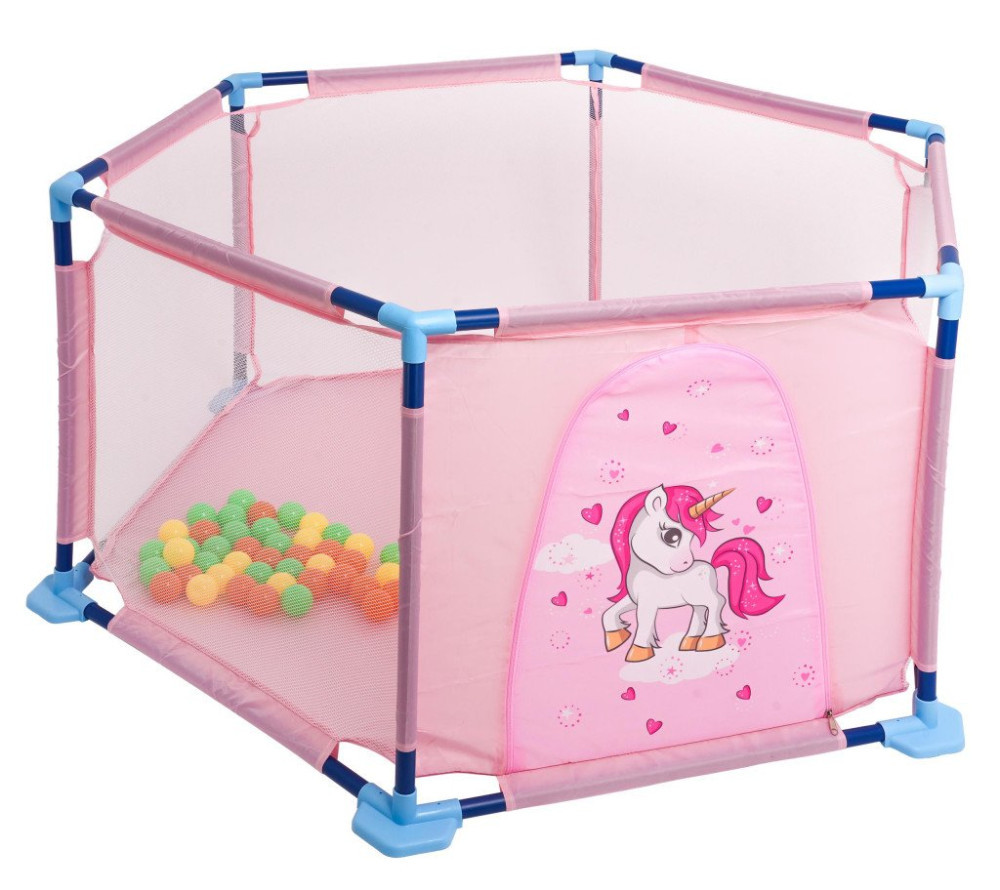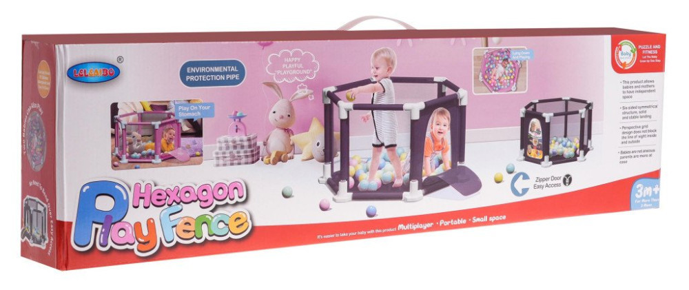 A járóka öt fala hálóból készült, ami lehetővé teszi a baba megfigyelését játék közben. Az egyik fal cipzárral rendelkezik a könnyű be- és kilépés érdekében. A járókához 40 színes golyó tartozik.