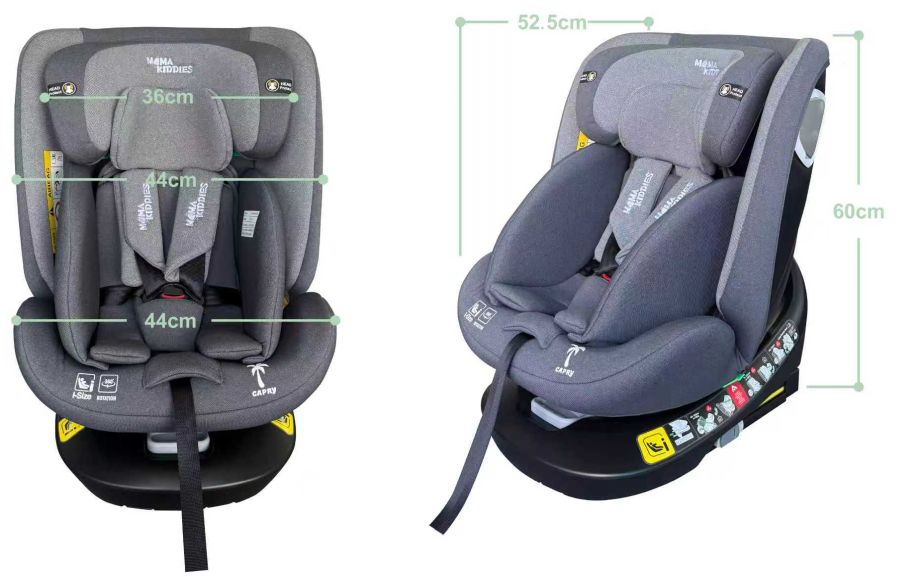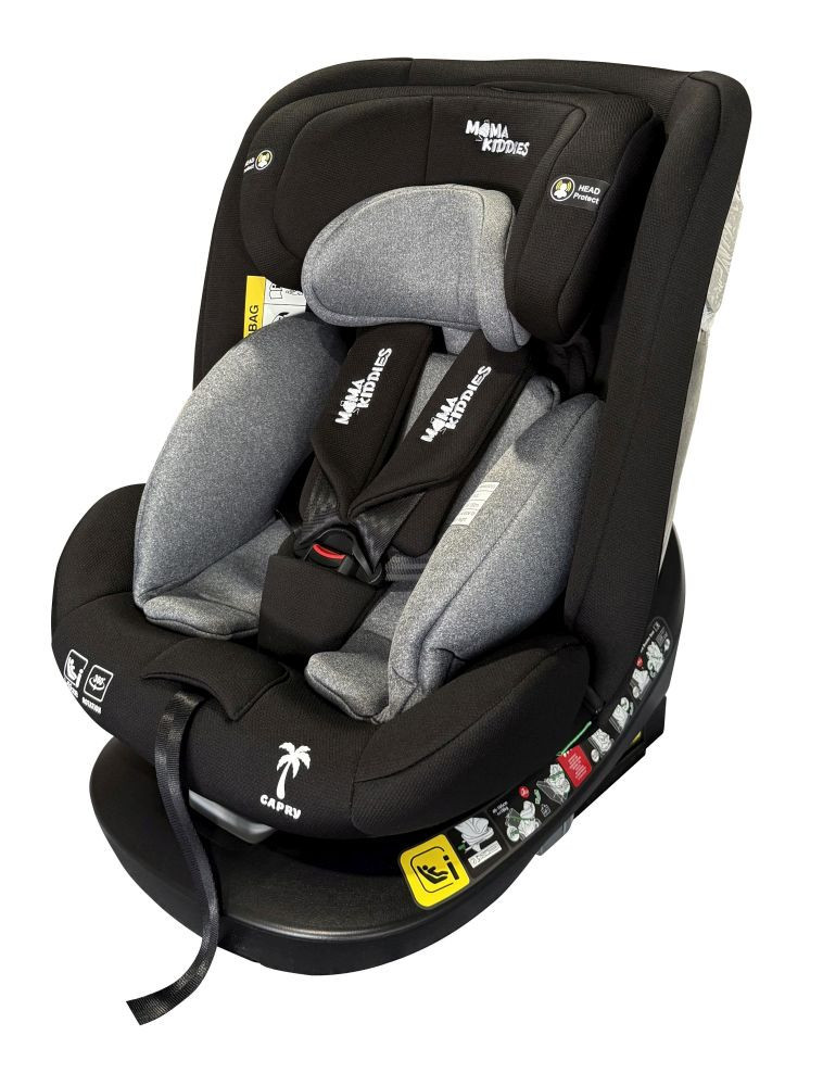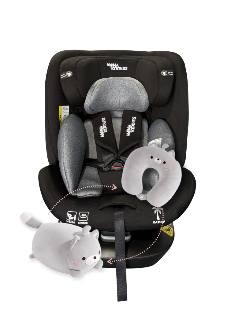 Zabezpečuje bezpečné a pohodlné cestovanie. Sedačka sa otáča o 360 stupňov a má nastaviteľnú opierku chrbta aj hlavy. Mama Kiddies je oddaná bezpečnosti a pohodliu detí – touto sedačkou stanovuje nový štandard v oblasti detskej bezpečnosti.