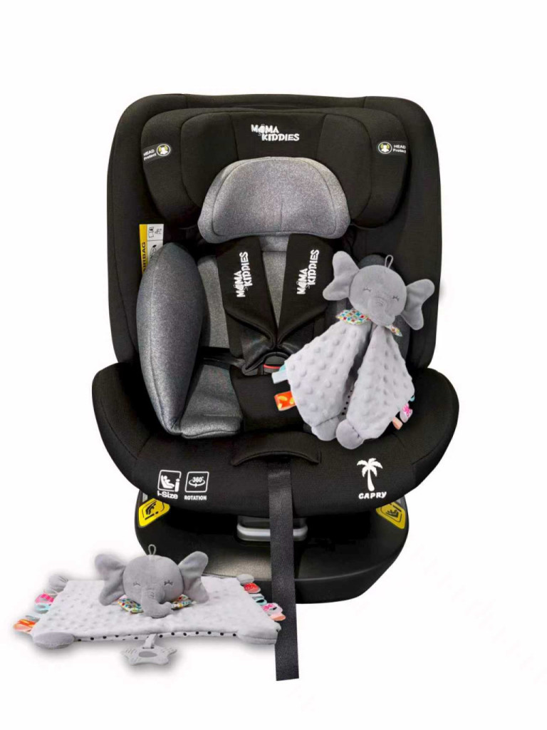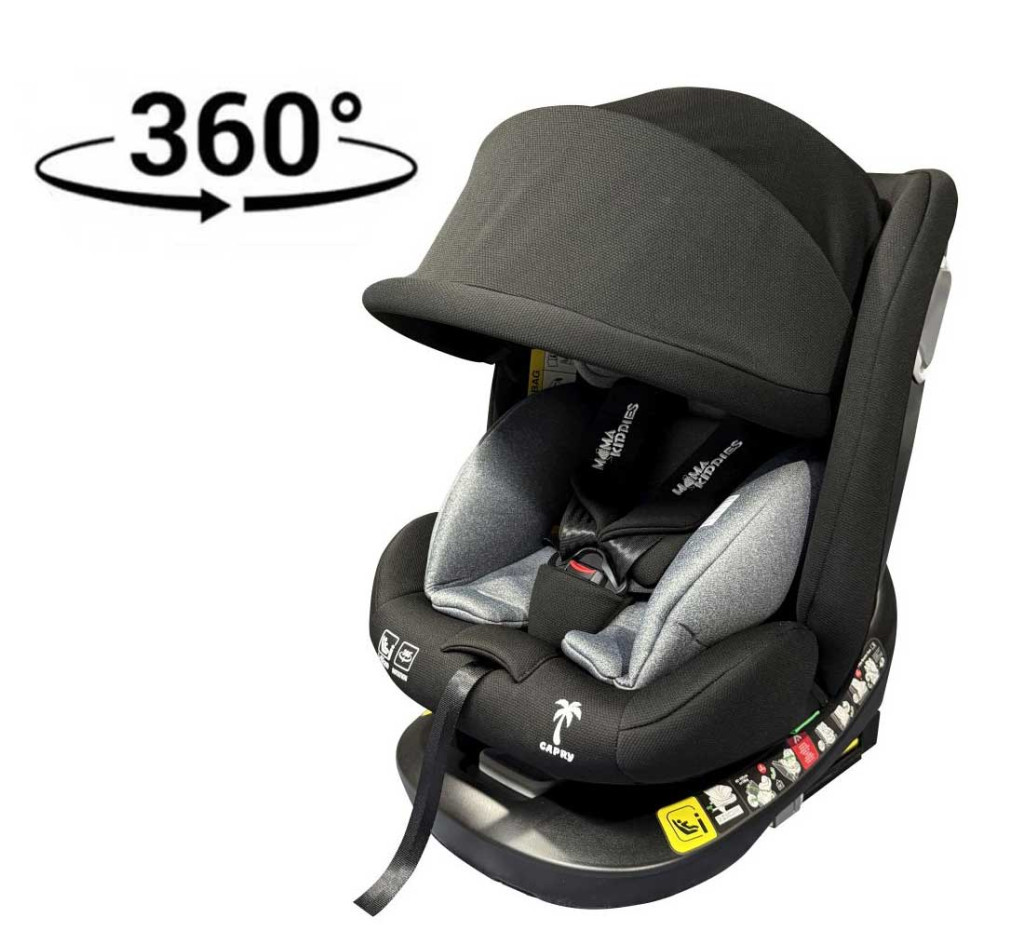 ISOFIX 360° otočná autosedačka Mama Kiddies iSize Capry (40–150 cm) v čiernej farbe + darček